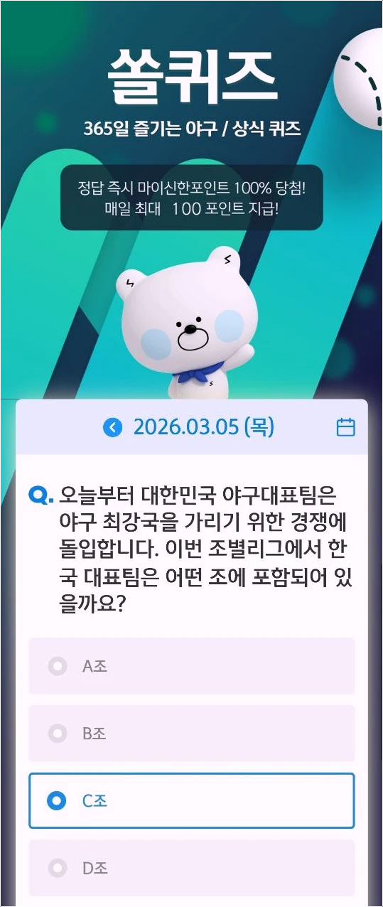 신한쏠퀴즈 야구상식퀴즈 3월5일 정답 야구 팬들의 아침을