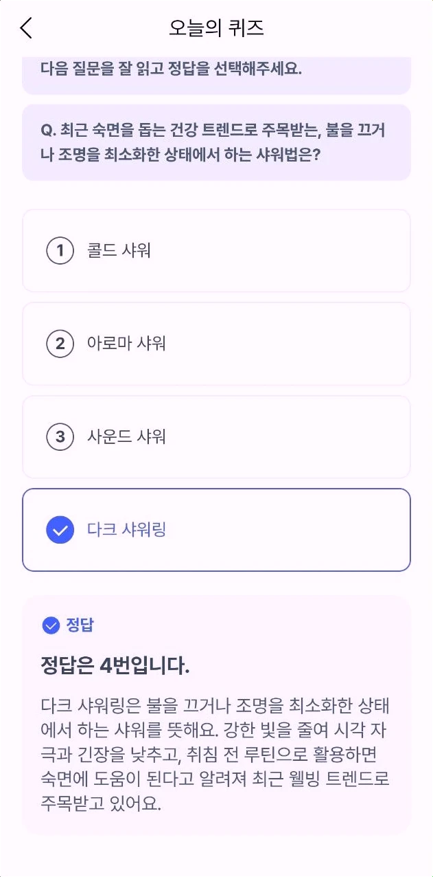 - 연속 정답 보너스: 7일 연속 정답을 맞힐 경우 '위클리 챌린지' 보너스가 추가로 지급되어 꾸준한 참여가 유리합니다.