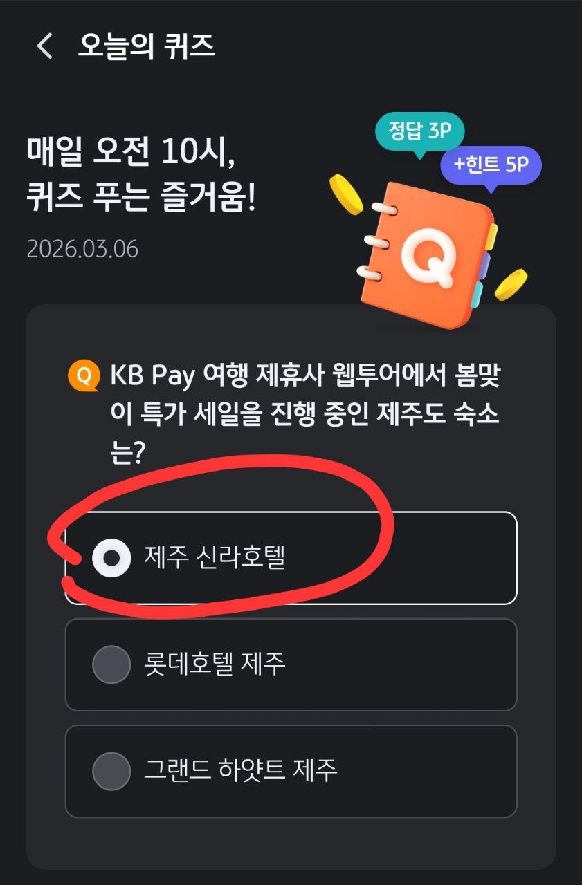 | 카카오페이 퀴즈타임 3월6일 정답 매일 확인하고 포인트 받기 (0) | 2026.03.06 |
